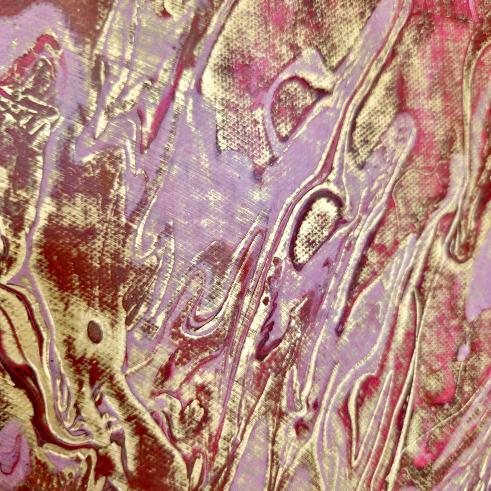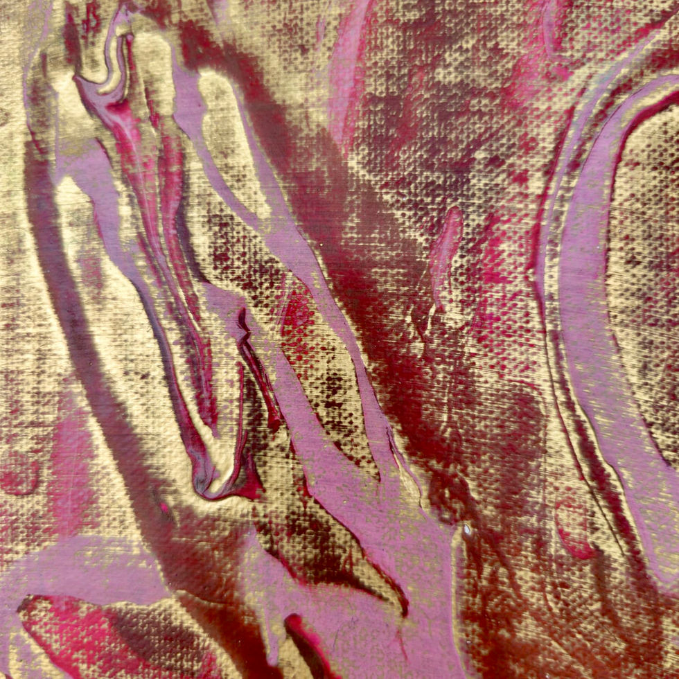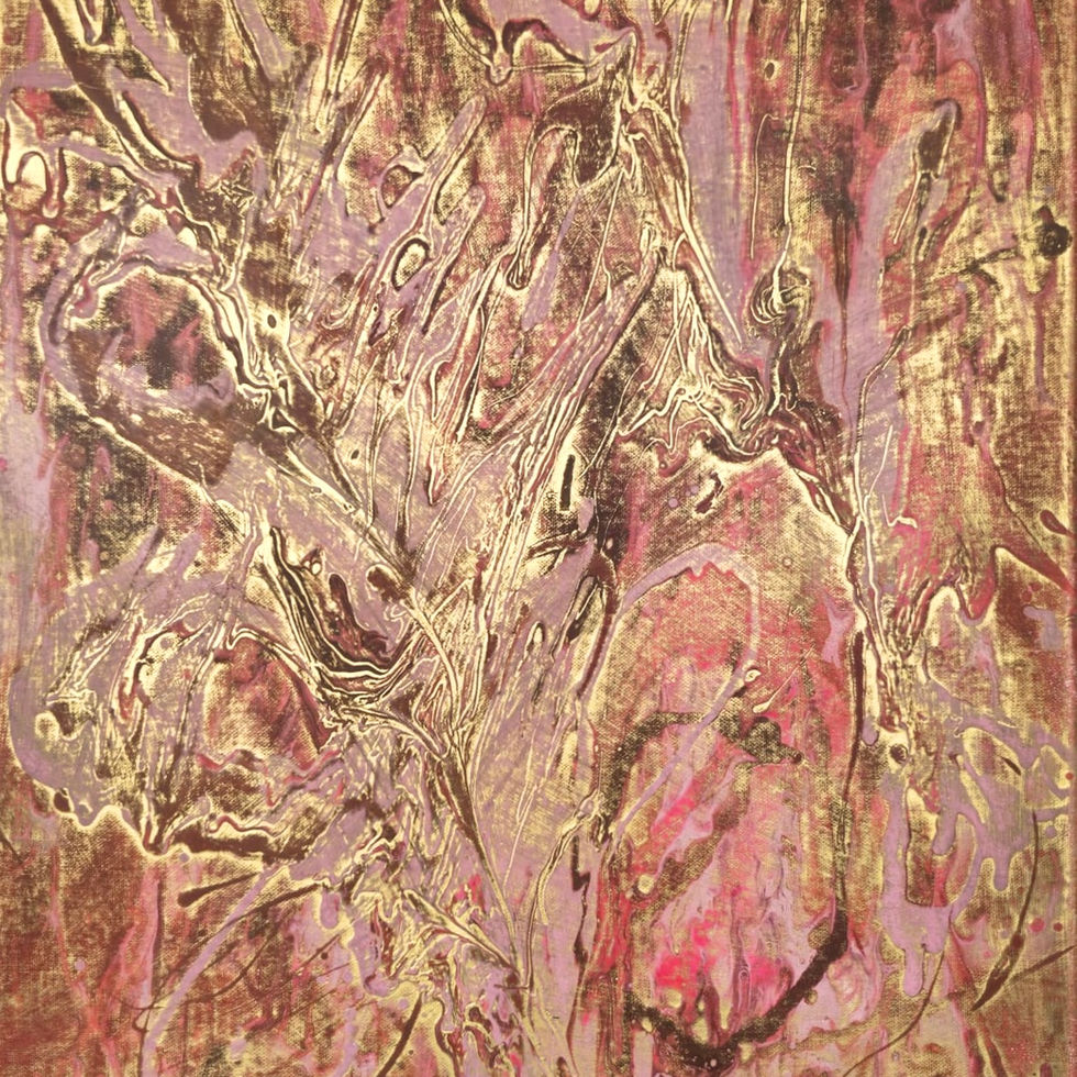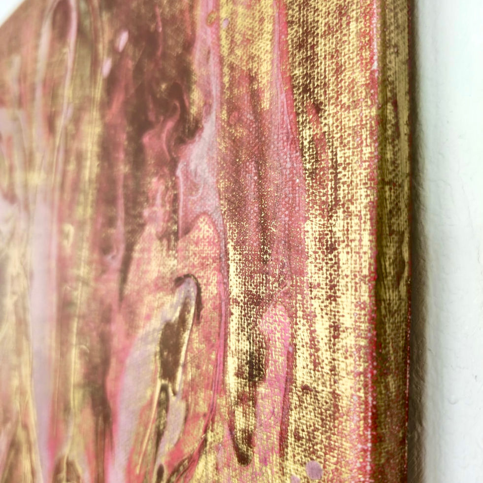 Golden Bloom is an abstract exploration of warmth and transformation, where fluid forms and layered textures invite diverse interpretations. Soft pinks and plums swirl and interlace beneath the delicate veil of sanded gold, creating a composition that could evoke the gentle unfurling of a flower, the tender contours of a heart, or even the raw energy of a rock facade. Each element seems to pulse with life, imbued with a sense of potential and quiet strength. The organic shapes emerge softly from the gold, inviting reflection on nature’s cycles, love’s warmth, and the quiet beauty of new beginnings. A piece open to interpretation, Golden Bloom offers an intimate, ever-changing experience with every gaze.