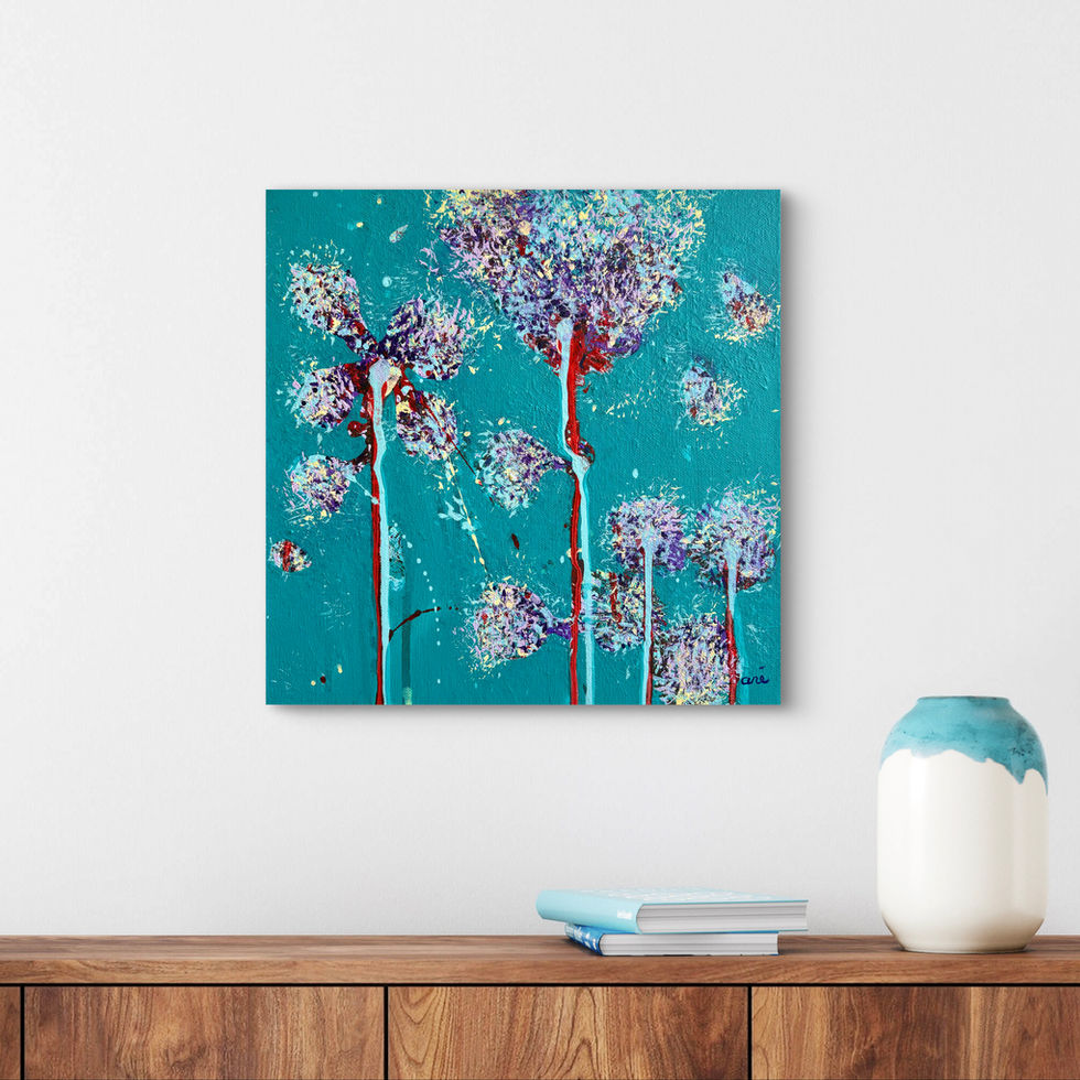 Part of a collection of nine, Sprouting Whispers draws inspiration from the vibrant flora of my South African roots, capturing the pulse of nature’s energy and renewal. Each piece begins with expressive layers of colour, then evolves intuitively as I paint away a single shade—revealing organic, almost biomorphic forms that echo blooming flowers, emerging life, and nature in motion. This instinctive yet deliberate process balances chaos and clarity, mirroring the rhythms of growth and transformation. Chasing Summer invites, you to explore the beauty of abstraction and the ever-shifting connection between light, form, and life